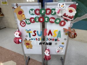 つばさ保育園かすみ園の先生方、園児たちがクリスマスに合わせて素敵な絵画と飾りつけを作ってくれました。